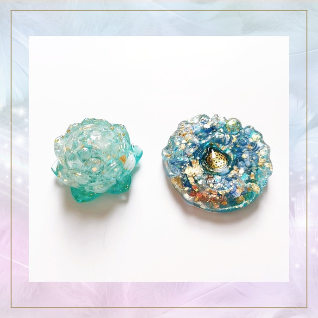 ⟢⋮────⟢⋮────⟢⋮────⟢⋮ 心を癒す「青龍様とロータスオルゴナイト セット 」のご紹介です! この特別なオルゴナイトは、天然石アクアマリンとカイヤナイトを使用し、青龍の幻想的な色合いとロータスの美しさを見事に表現しています。 青龍様は東の方角を司り、成長や発展の象徴であり、人間関係をスムーズにし、成功や勝利をもたらします。アクアマリンは心の平穏をもたらし、コミュニケーションを高める力があるとされ、結婚運や家庭運のお守り石としても大変人気です。 青龍様のエネルギーと相まって、美しいブルーが第5チャクラと対応し、新たな可能性を引き出すお手伝いをします。 konkanipeが特別にオーダーし、レジンアーティストtomoが真心を込めて仕上げたこのオルゴナイトは、それぞれ1点づつの手作りとなっており、インテリアやコレクションとしても、あなたの空間を華やかに彩ります。 ⟢⋮────⟢⋮────⟢⋮────⟢⋮ ✦購入特典!✦ 龍様かオルゴナイトスピリチュアルパワーのポストカードをプレゼント! 専用ギフトBOX入!贈り物にも♡ ※発送元匿名配送のみのお届けとなります。 内 容: オルゴナイト 青龍様とロータス セット 天然石アクアマリンとカイヤナイト入 サイズ: 青龍様 約6cm x 6cm x 1.5cm ロータス Φ4cm x 3cm(サイズは目安です) 重 さ: 約90g (青龍様約40g ロータス約50g) 素 材: 天然石(カイヤナイトAA:青龍様、アクアマリンAA++:ロータス)、樹脂、金属、ホログラム、ラメ 定 価: 2,400円(税抜)2,640円(税込) ⟢⋮────⟢⋮────⟢⋮────⟢⋮ お客様へのメッセージ。 ※SNSでシェアいただけると嬉しいです。