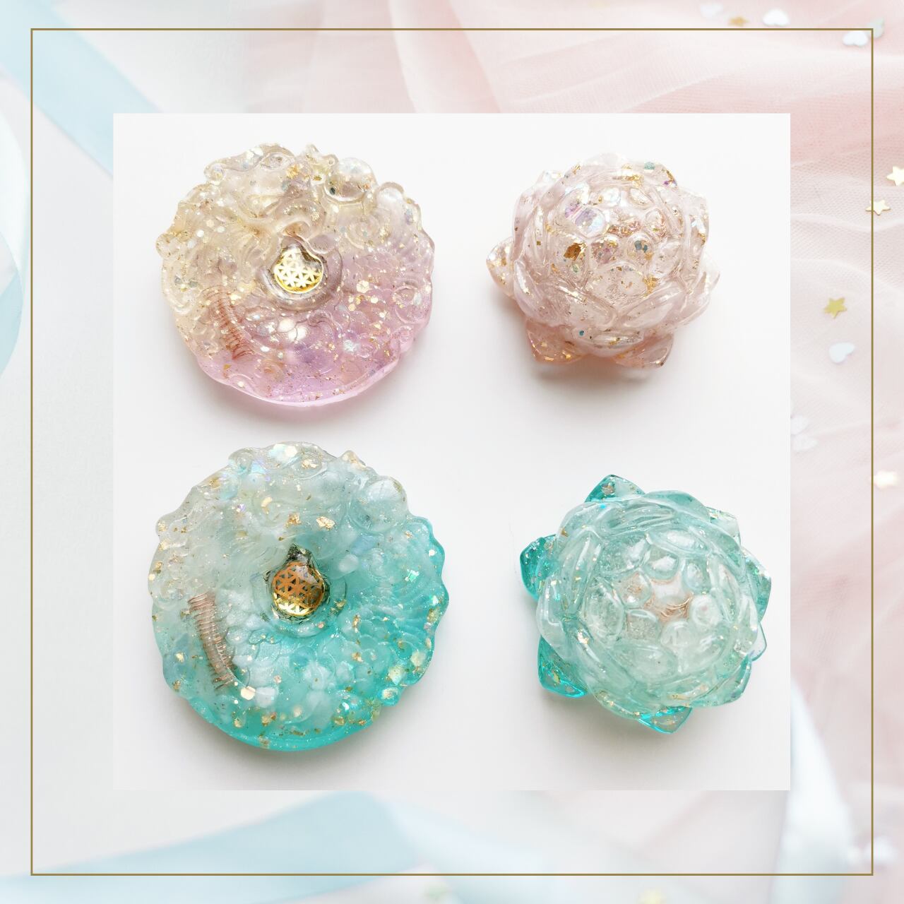 konkanipeが特別にオーダーし、レジンアーティストtomoが心を込めて仕上げたこのオルゴナイトは、癒しの波動を放っています。各オルゴナイトはそれぞれが1点づつの作品となっており、インテリアとしてもコレクションとしても、あなたの空間を彩ります。