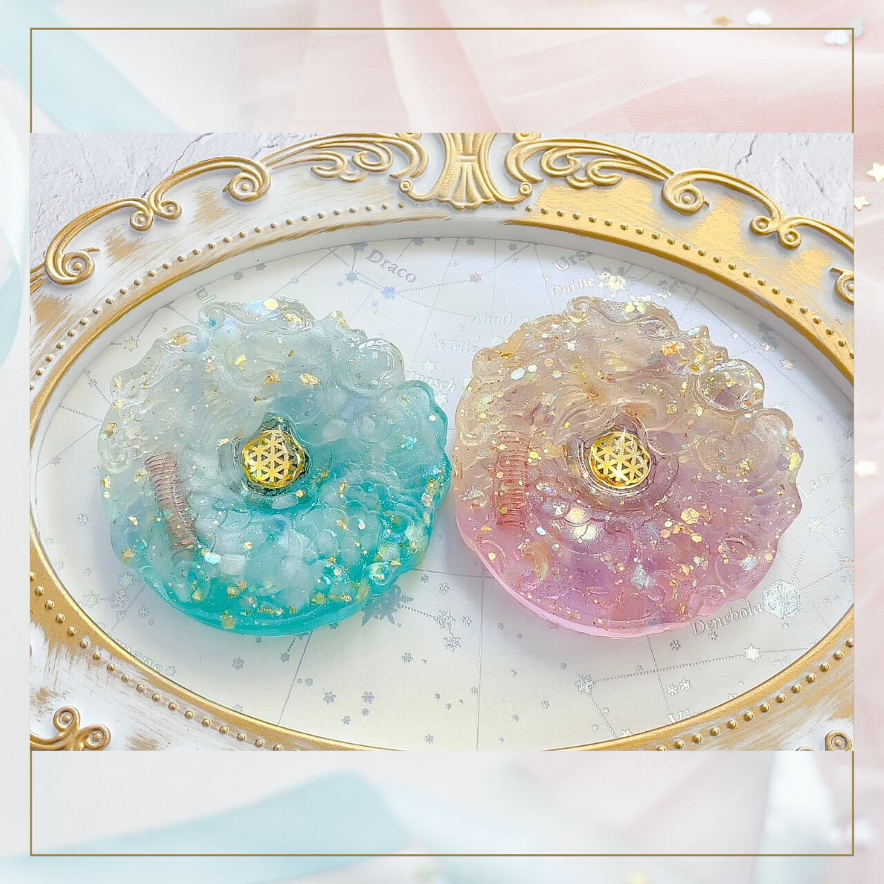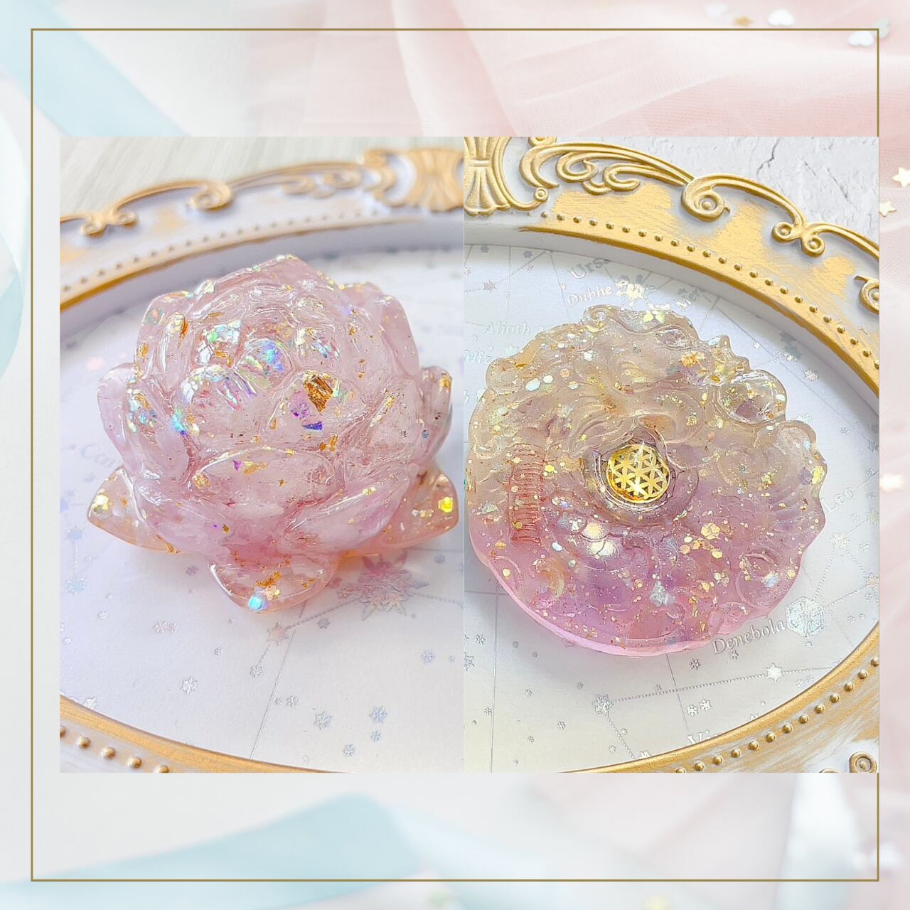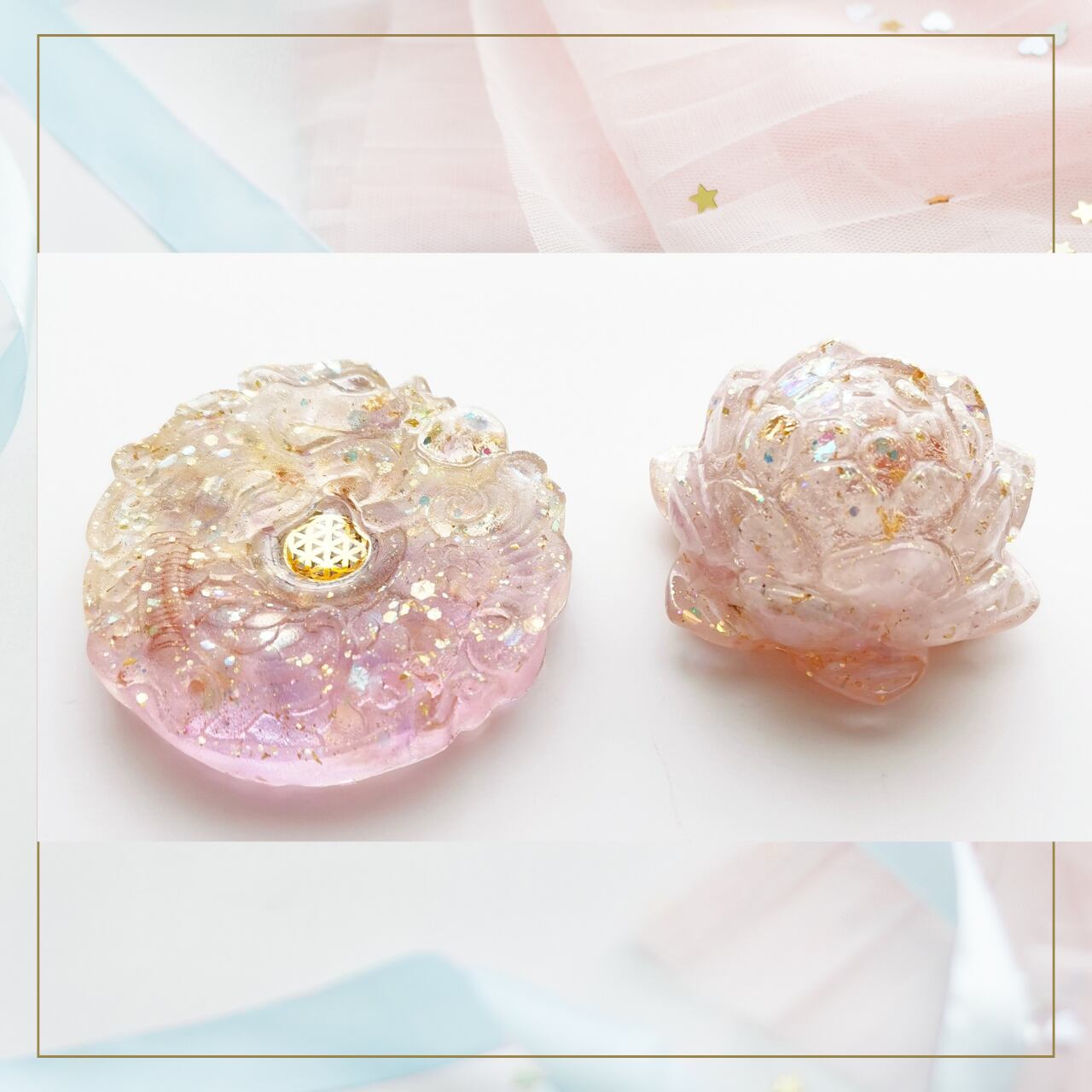 内 容: オルゴナイト 桃龍様とロータス セット 天然石アメトリン・クンツァイト入