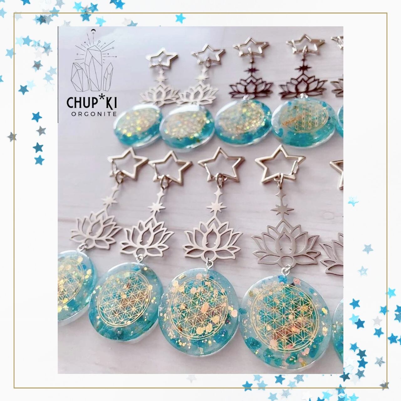 この美しいオルゴナイトキーホルダーは、神聖幾何学「フラワーオブライフ」のデザインと、天然石アパタイトを使用しキーホルダーで持ち歩けるオルゴナイトです。