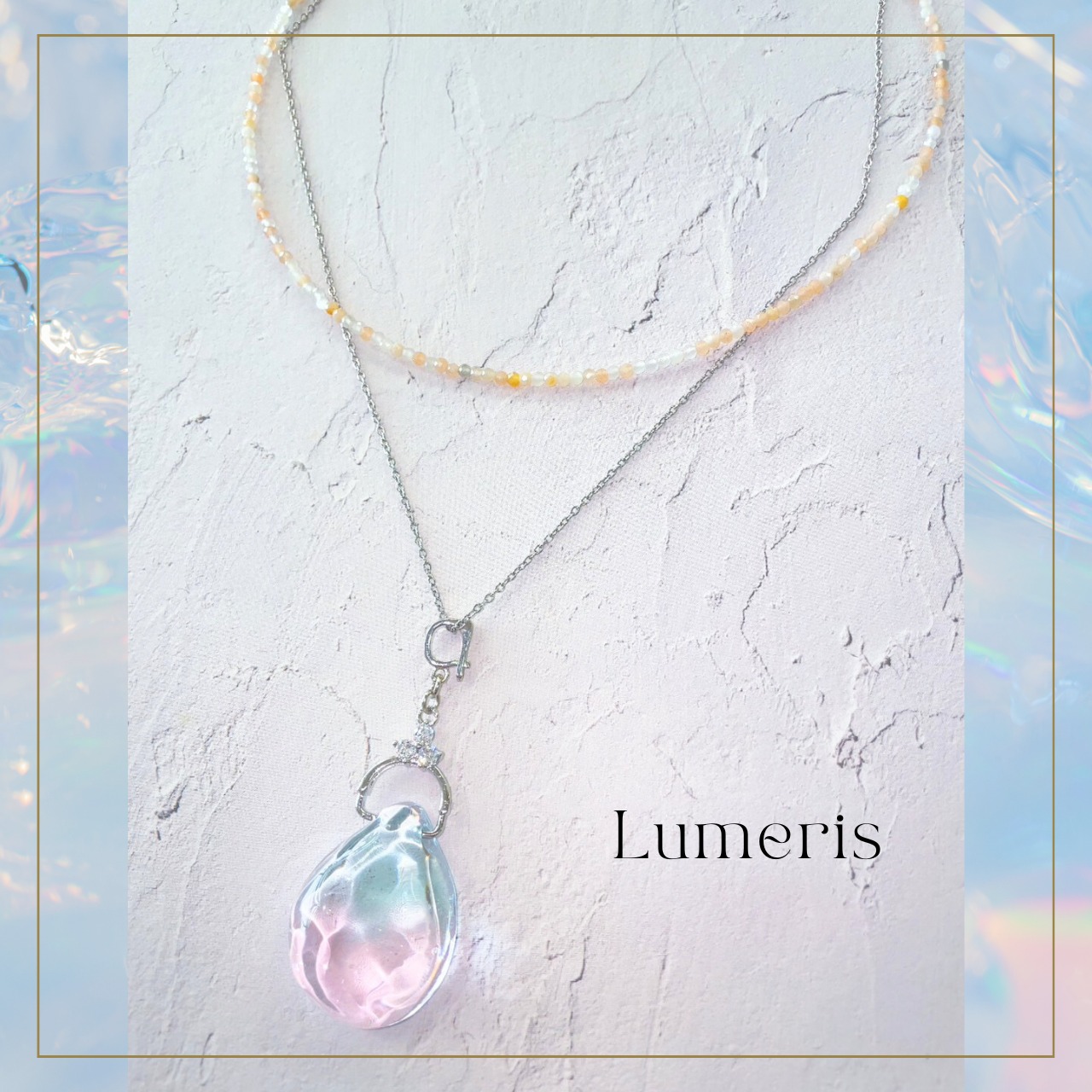 波模様を閉じ込めた「3WAY 2連ネックレス 海のしずく Lumeris(ルメリス)天然石オレンジムーンストーン」のご紹介です!
