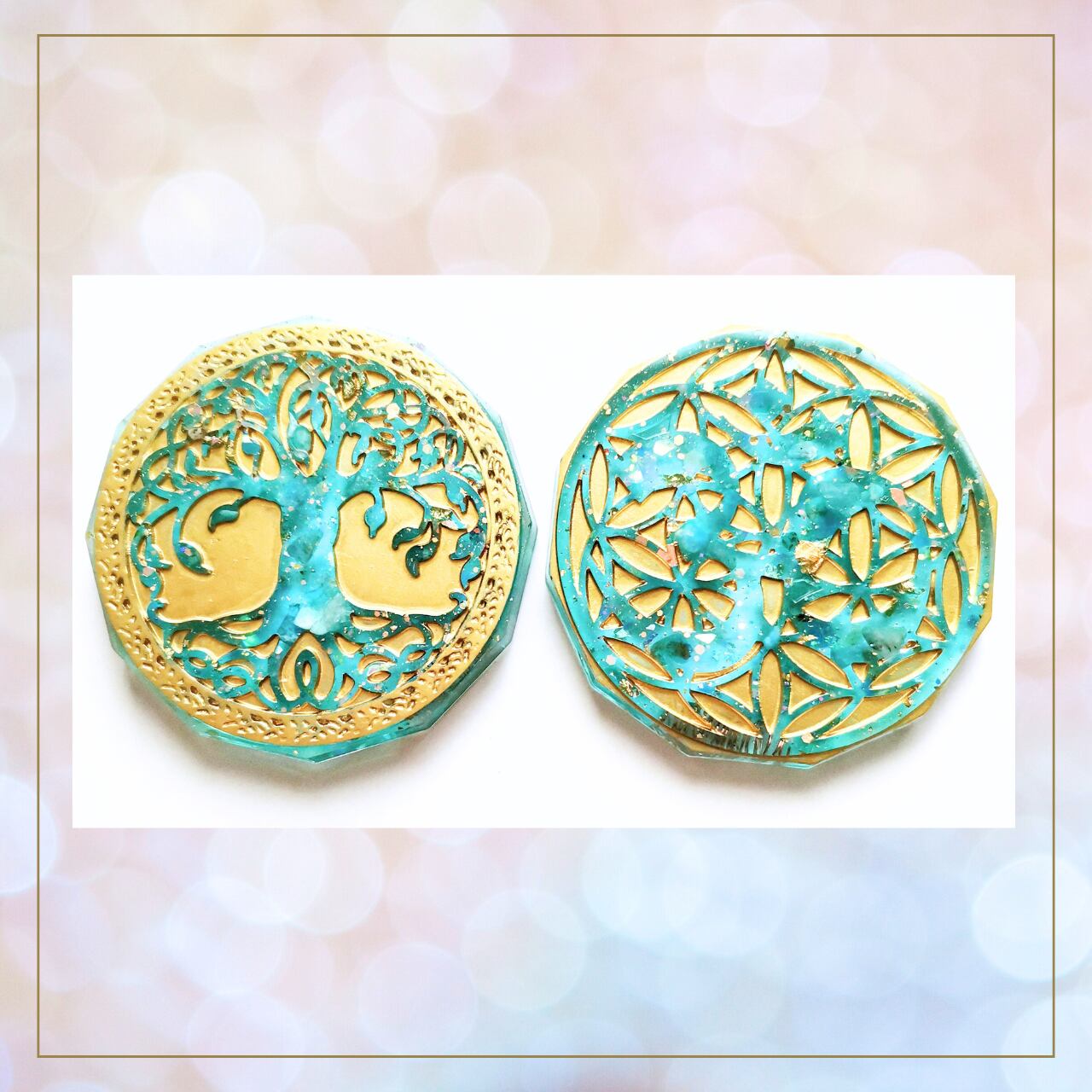 ツリーオブライフとマントラ入りフラワーオブライフのセットとなります。